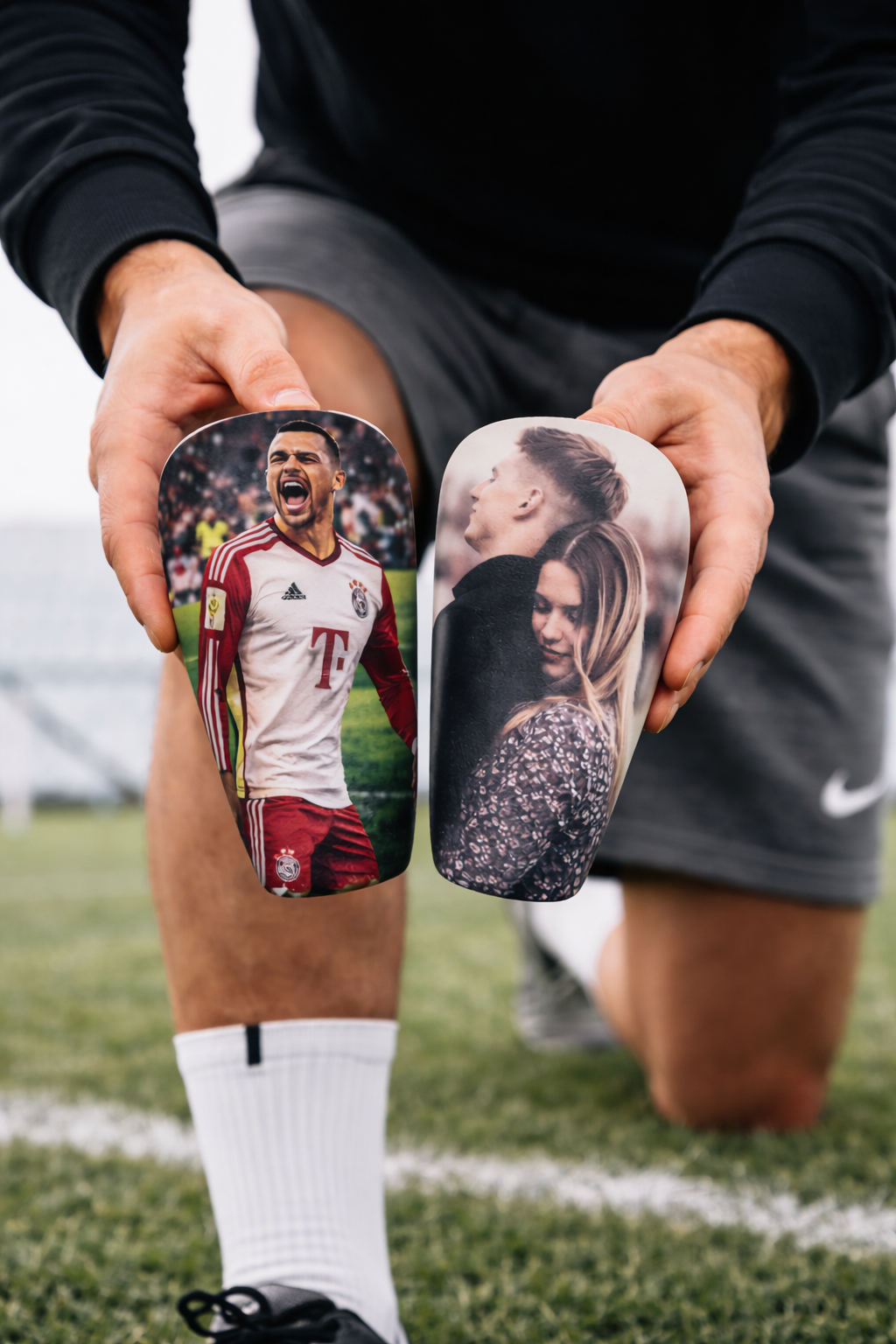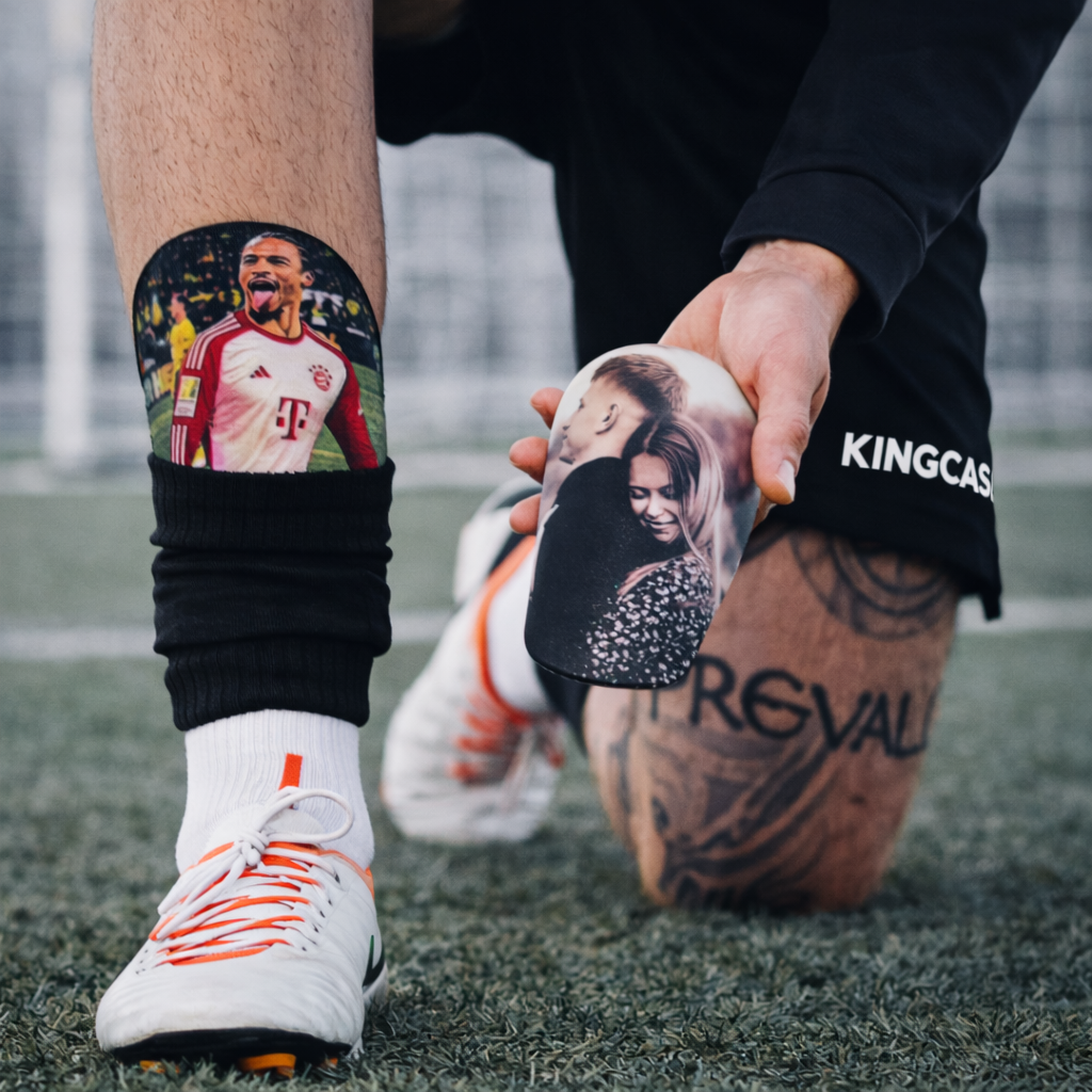 Des protège-tibias basiques identiques à tous les autres joueurs... ou un équipement unique avec ta photo, ton prénom et ton numéro.